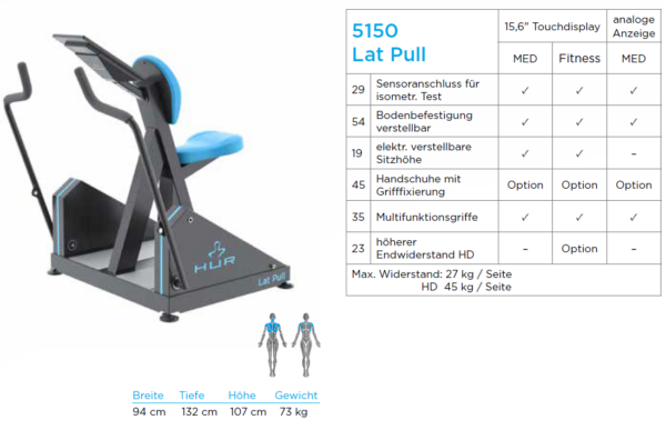 Der „Ruderzug“ ist ideal für das gezielte Training der oberen Rückenmuskulatur, insbesondere des Latissimus. Beide Arme bewegen sich unabhängig voneinander. Das gewährleistet ein symmetrisches und effektives Training. Der höhenverstellbare Sitz sorgt für eine individuelle Anpassung und eine ergonomische Trainingsposition. Optimieren Sie Ihr Rückentraining mit dem vielseitigen und benutzerfreundlichen Lat/Pull-Trainingsgerät.