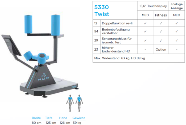 Dieses Trainingsgerät ist für das Präventionstraining und Fitness-Training bestens geeignet. Eine MED-Variante als Medizinprodukt bietet der Artikel 9330 Twist EA.